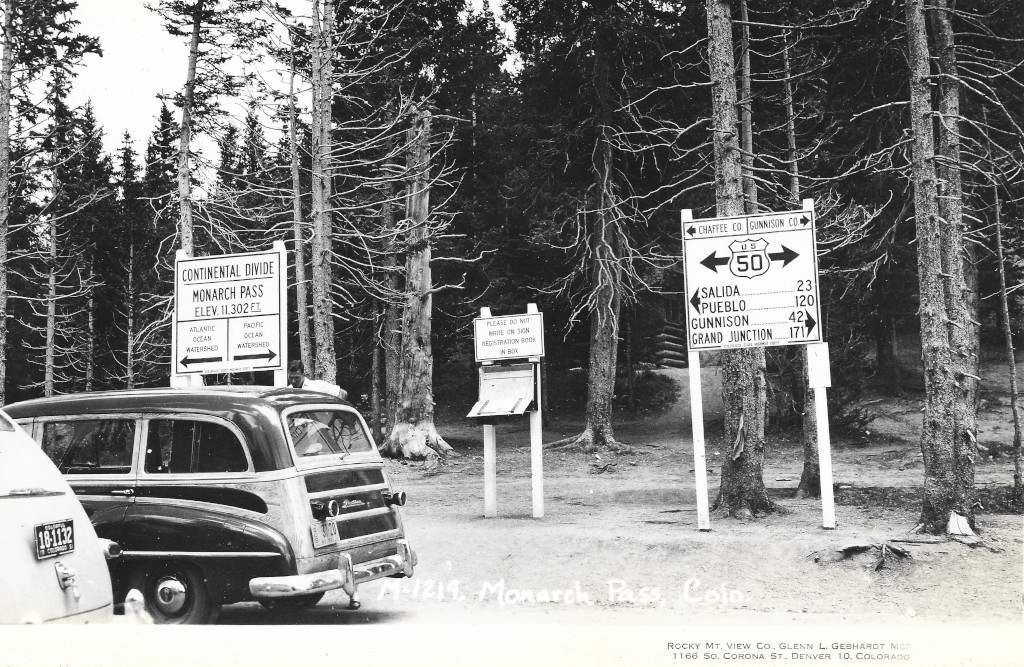 That’s not a mistake… that really is a Vail Pass sign on top of Monarch Pass in 1939. Read the details page to find out why this was here.